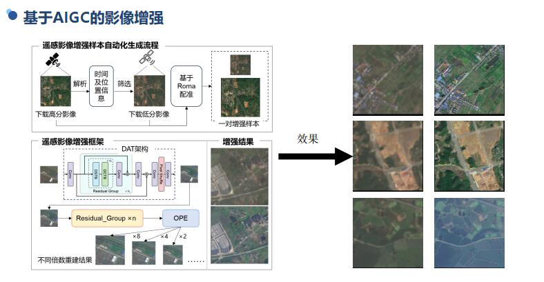 韦处长介绍团队的主要研究内容:基于AIGC的影像增强技术,以哨兵二号、高分七号影像作为研究对象,制作遥感影像增强数据集,并基于AIGC建立遥感影像分辨率增强框架,有效提升中低分辨率遥感影像精度。水域岸线空间管控智能模型研究,采用AI+遥感技术训练智能识别及检测模型,形成自动智能识别涉河建设项目、河湖库水体演变动态监测等能力。水域领域知识库构建技术研究,基于OCR和文本结构化提取技术,形成端到端的知识库构建工具,并对通用领域检索模型进行调优,有效提升领域知识检索效率。