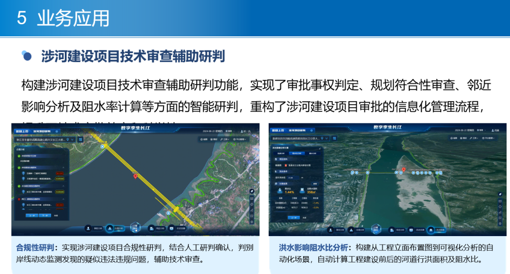 韦处长以信息化系统的视角生动展示了AI技术在长江流域的河湖遥感解译及涉河建设项目技术审查辅助研判的实践应用。他表示,AI+遥感技术的应用能提升水域岸线遥感影像的解译效率,并支撑涉河建设项目许可审批,发现岸线利用重复申报、未批先建、与规划冲突等问题。