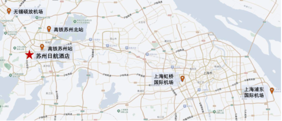 1.高铁苏州站:在苏州火车站地铁站乘坐2号线(桑田岛方向)到广济南路地铁站,换乘1号线(木渎方向)在狮子山地铁站出站;打车约10公里路程,大约需要20分钟。2.高铁苏州北站:在高铁苏州北站地铁站乘坐2号线(桑田岛方向)到广济南路地铁站,换乘1号线(木渎方向)在狮子山地铁站出站;打车约25公里路程,大约需要45分钟。3.无锡硕放机场:乘坐机场大巴苏州火车站线,在苏州火车站地铁站换乘地铁路线到达;打车约42公里路程,大约需要40分钟。4.上海虹桥:在上海虹桥站乘高铁前往苏州站/苏州北站,换乘地铁路线到达;打车约90公里路程,大约需要1小时。5.浦东机场:在机场乘地铁到达上海站,在上海站乘高铁前往苏州站/苏州北站,换乘地铁路线到达;打车约150公里路程,大约需要2小时。